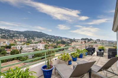 Located just a few minutes' walk from Vieux Cannet, in a small condominium with a swimming pool and in a quiet environment, yet close to shops, this large 160sqm duplex penthouse has been tastefully renovated. A sauna has been integrated into the apartment for optimal comfort. Nice view of the hills and a beautiful glimpse of the sea from the terraces.