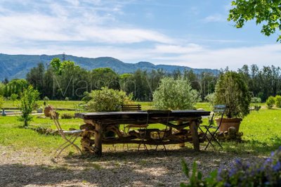 The garden, a true haven of greenery, is arranged around a stunning lap pool measuring 13 meters in length and 3 meters in width. Surrounded by majestic century-old plane trees and around forty olive trees, the grounds invite relaxation and contemplation in every season.