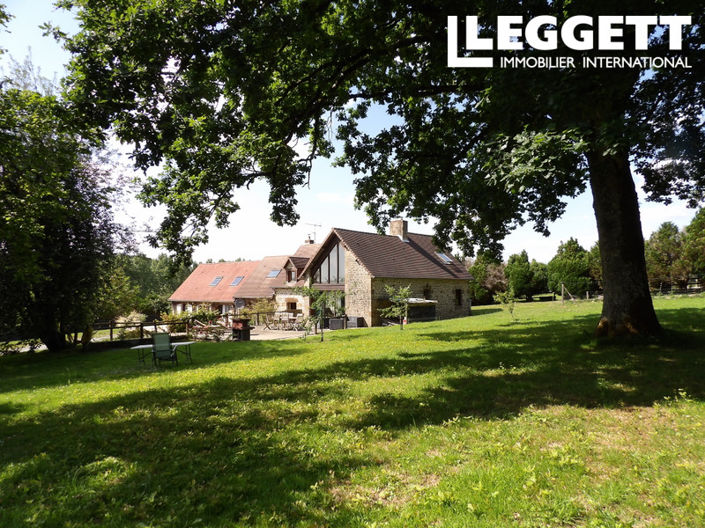 Beautiful and spacious granite stone home, for a family or gîte, with a living-room cathedral ceiling and a huge wood-fireplace, 5 bedrooms, 3 bathrooms and 1 shower room, land surrounding the property 5.000m2 /0,5ha, 2 boxes for horses, outdoor terrace, 30m2 garage with electric door.