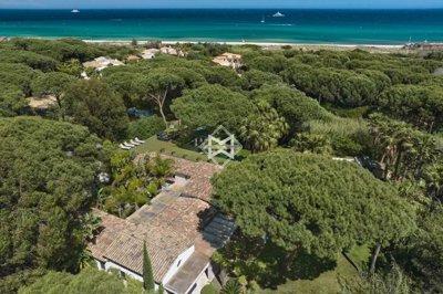 Ideally located just 150 meters on foot from the beaches of Pampelonne, out of sight, the single-storey Californian villa extends over approximately 450 m², built on a beautiful flat plot of 2950 m².