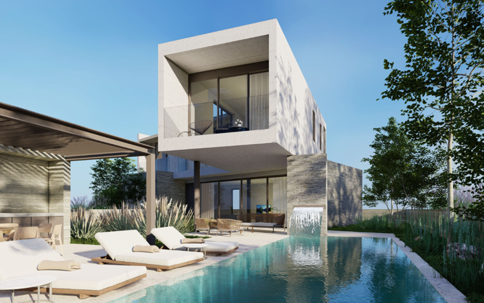 Embrace the elegance and thoughtful design of our villas, which boast Italian or Spanish manufactured floors, fully thermal insulated properties, energy-efficient slim line aluminium features, and a water pressure system. Inside, you'll find a built-in kitchen with Corian countertops, built-in wardrobes, underfloor heating, and VRV cooling for optimal comfort.