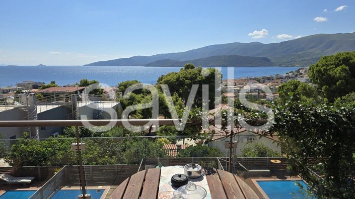 The house consists of 3 floors plus a basement (50sqm storage area). The ground floor is an independent studio, with a kitchen, bathroom and sauna. The first floor has a large kitchen, a dining room, a living room and an energy fireplace. The second has 2 large bedrooms and a bathroom with hydromassage. Also, the house's swimming pool is ideal for relaxation and entertainment, always with a wonderful view of the sea. It is just 250m from the beach. The climate of the area is wonderful, due to its location and the high vegetation of the area. It has no humidity because apart from its location, it has been built with quality 25/30 concrete, highest quality. It has also been awarded as the 3rd best construction in Corinth. It also consists of a simple and perimeter alarm. The area has also been awarded for the crystal-clear waters of the sea area as there are thermal springs. The distance from Athens city centre and airport are only 1hour by car. There are beautiful destinations that you can visit such as Ancient Corinth, Epidaurus, Nafplio etc.