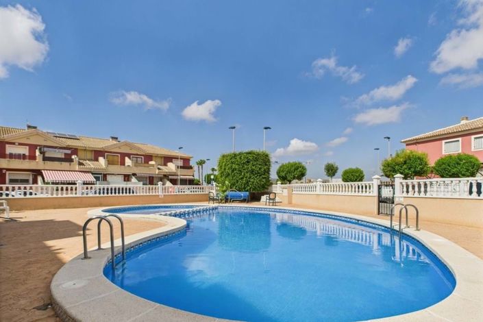 The home features a modern open-plan kitchen with white goods included, fitted wardrobes, and spacious interiors. Outdoor living is enhanced by a private solarium and a private terrace, perfect for enjoying the Mediterranean sunshine. Residents also benefit from access to a well-maintained communal swimming pool, ideal for relaxation and leisure.