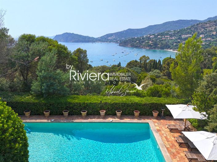 A remarkable property built in 1990 by the Tropezian architect Georges Grateau and designed by the famous Parisian decorator Jean-Paul Faye, enjoying a wonderful view of the sea and Cap Negre. It consists of a main house on 4 levels of approximately 461m2 of living space, a caretaker's house of 90 m2, a double garage of 30 m2, a garage of 18 m2 and a cellar of 18 m2. All built on a wonderful landscaped park of 4,230 m2 with a swimming pool of 12.5x6 meters, on the second sea line. Said property is located at a distance of 180 meters from the sea, at an altitude of 45 meters, its exposure is South West. The width of the land is approximately 50 meters by a depth of 85 meters, sloping towards the sea. A main house: approximately 461 m2 of living space, on four levels, composed on the garden level: two bedrooms en suite with bathroom and dressing rooms, a dining room, a kitchen, an office, a cold room, a laundry room, a boiler room, a cellar of 18 m2 and a toilet, South and North terraces - In the basement: an independent bedroom en suite with bathroom and dressing room - On the 1st floor: an entrance hall, a living room opening onto a double terrace, a bar, a cloakroom, separate toilet, an en suite bedroom and a large double garage of 30 m2 - On the 2nd floor: a master suite of 95 m2 with bathroom, dressing room opening onto the outside via a beautiful terrace - A single-storey caretaker's house: approximately 90 m2 of living space, composed of a living room with kitchen and two en suite bedrooms with bathroom - An independent garage of 18 m2 for 1 vehicle - An adjoining and landscaped plot of land of 4260 m2, terraced, facing South West with swimming pool, sunbathing area, technical room and approximately 7 parking spaces.