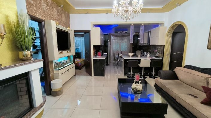 For sale apartment of 90 sq.meters on the Olympic Coast. The apartment is situated on the 1st floor. It consists of 3 bedrooms, living room with kitchen, one shower WC, one storeroom, one office.