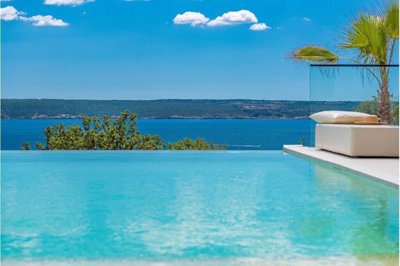 here bedrooms with 5 bathrooms en-suitesalon with indoor fireplaceswimming pool of 50 sq.m. with heating possibilitywhirlpoolwonderful glass terraces overlooking the seaultra-modern interior designsolar panelsoutdoor lounge areabilliard roomfitnesss studiowellness with two types of saunasmassage roomSMART UHD TV in every roomHI-FI systemPlaystation and Video Game centreSMART energy saving solutionscentral cooling and heating systemsBBQ area and outdoor diningcascading landscaped terrain gently sloping to the seaparking for 3-4 cars