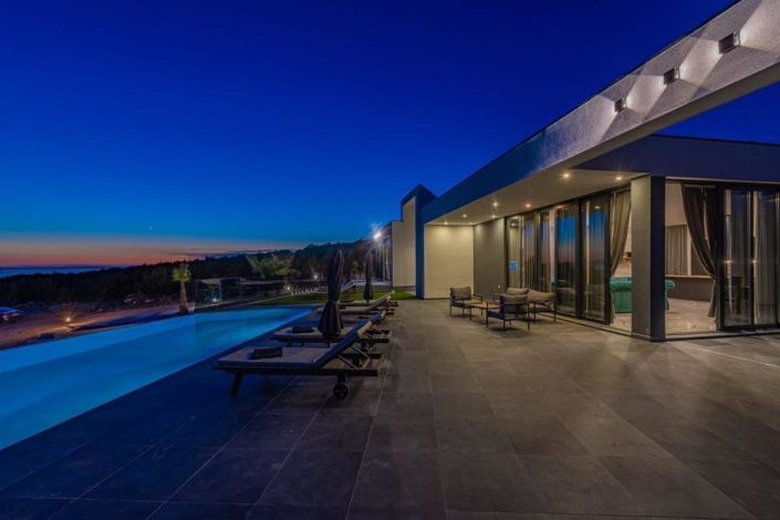Villa was built in 2021.The villa is designed as a duplex where in the first house we find an apartment with a large open space living room with kitchen and dining room with access to a spacious terrace with a swimming pool, sunbathing area, relax zone and barbecue, four bedrooms and as many as five bathrooms.
