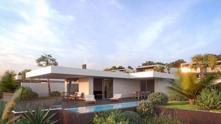 The villa of 350 sq.m. consists of a ground floor and an upper floor with a swimming pool and garden.