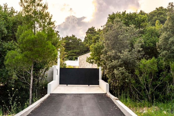 On the romantic island of Rab, in a quiet place we offer a modern villa is of 350 sq.m. surrounded by a dense forest with private access via a bridge over a stream.
