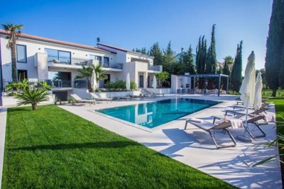 Wonderful boutique property of the three apartments in Porec outskirts, only 1 km from the beaches!They founded Porec, the Romans did, the Venetians conquered, and today, it stands as a treasure chest of history and cultural heritage draped in the luxurious modernity of a 5-star gem. The city's beauties are concealed by the multitude of tourists who relish in the hospitality and top-notch service of this Istrian pearl year after year.For sale is a luxurious villa, nestled in Porec, just 1 kilometer from the sea and the first beaches. This magnificent property spans 683 square meters of living space divided into three residential units. Each apartment is crafted with meticulous attention to detail.On the ground floor of each unit, a bright living room adorned with vast glass panes and windows welcomes, a thoughtfully designed kitchen exudes an elegant modern aesthetic, a cozy sleeping area with a wardrobe awaits, a well-appointed bathroom stands ready, an additional storage room, and another tastefully arranged bathroom. The second floor of each apartment features two splendid bedrooms, each with its private bathroom and a terrace offering a magnificent sea view.This villa boasts video surveillance and is furnished with lavish Italian furniture and exceptional decorations. The bathrooms are adorned with luxurious Catalano and Grohe fixtures, representing a commitment to the highest standards of quality.For optimal comfort during winter days, the villa is equipped with a heat pump, underfloor heating, and individual air conditioning units in each room.It is being sold fully furnished and equipped, enabling the new owner to move in and live in luxury immediately. The exterior landscape is a green oasis encompassing a total of 1753 square meters, adorned with an array of lush greenery, including large palm trees and cypresses. This idyllic property is complemented by additional storage space of 33 square meters, a heated 40-square-meter pool, parking for 8 cars, and a spacious summer kitchen of 35 square meters.This villa harmoniously blends the beauty of its natural surroundings with the best of modern living, making it a sanctuary for those seeking the pinnacle of luxury living. It has the potential for summer rentals, making it an attractive investment opportunity.This is the ideal opportunity for those who wish to have their own home or engage in investment.