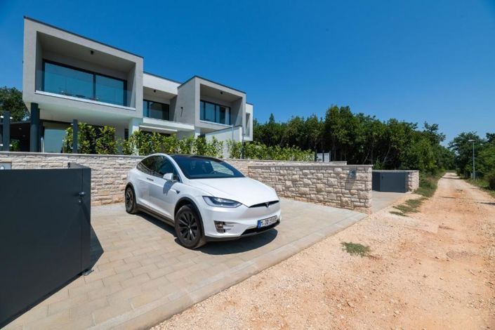 All around there are forests and fields, which guarantee peace, and for those who like an active holiday, an invitation to bike riding and walking. On the ground floor there is one bathroom and a large open space living room with a designer kitchen from which there is access to the sun deck and swimming pool.In the pool you can enjoy the summer kitchen with barbecue. In addition, there is also a room that serves as a laundry room. Stairs lead to the first floor, where there are 3 bedrooms and two bathrooms.Two of the three bedrooms have a beautiful view of the sea from the balcony.All rooms are air-conditioned and heated.The villa has underfloor heating with a heat pump and can be rented in winter.It also has a charging station for electric cars and bicycles. Ref: RE-U-28379Overall additional expenses borne by the Buyer of real estate in Croatia are around 7% of property cost in total, which includes: property transfer tax (3% of property value), agency/brokerage commission (3%+VAT on commission), advocate fee (cca 1%), notary fee, court registration fee and official certified translation expenses. Agency/brokerage agreement is signed prior to visiting properties.
