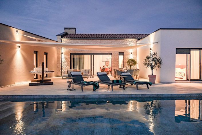 Located near the charming town of Vodnjan, this exquisite villa offers the perfect blend of elegance, comfort, and modern living. Vodnjan, known for its rich history, favorable climate, and stunning natural beauty, is a destination that caters to both adventure seekers and those looking for a peaceful retreat. Whether you’re planning an active family vacation, a summer getaway, or a tranquil escape in spring or autumn, Vodnjan has it all.Just a few kilometers from the heart of Vodnjan, this luxury detached villa, built to high standards in 2020, promises a lifestyle of sophistication and relaxation.
