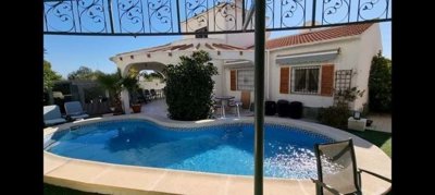 This fantastic four bedroom villa with private pool, built on a plot of almost 400m2, could not be located in a more convenient location, within the La Fuente area of Villamartin. Offering four ample bedrooms, two bathrooms, wonderful garden with private pool and bar, this villa really ticks every box.
