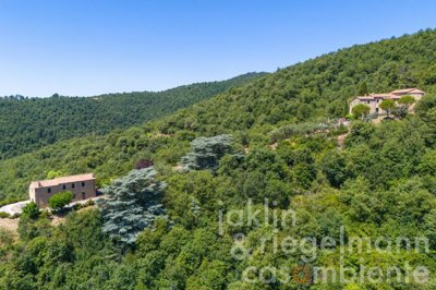 Set high above the rolling Pian di Marte, just north of Lake Trasimeno, this remarkable property offers a rare blend of deep history, privacy, and timeless Umbrian landscape. Surrounded by approx. 3 ha of land with sweeping views and complete tranquility, the estate includes a beautifully restored 16th-century church with its original crypt, a spacious main residence, and a fully independent guesthouse—each crafted with care to preserve the soul of the past while adding modern comfort.