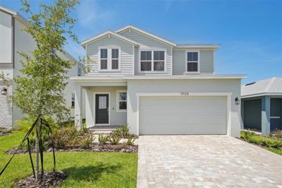 Ready Now! Introducing the Jupiter model —a thoughtfully designed two-story residence that seamlessly blends modern elegance with functional living spaces. This home features 4 bedrooms, 2.5 bathrooms, and a loft, offering ample space for families and entertaining guests. Upon entering, you're greeted by a soaring two-story foyer, creating an immediate sense of openness and grandeur. The open-concept floor plan connects the living, dining, and kitchen areas, fostering a warm and inviting atmosphere. The kitchen is a chef's dream, equipped with gray cabinets, quartz countertops and a large island, providing both style and functionality. The primary suite serves as a private retreat, featuring a spacious bedroom, a walk-in closet, and an en-suite bathroom with dual sinks and a separate shower. Upstairs, the loft offers additional living space, ideal for a home office, playroom, or media center. The remaining three bedrooms are generously sized, sharing a well-appointed bathroom. Step outside to the covered lanai, perfect for outdoor dining and relaxation, extending your living space into the beautiful outdoors. Additional features include smart home technology, tile flooring in main living areas, and a two-car garage. Experience the perfect blend of comfort, style, and functionality in the Jupiter model—a home designed to meet the needs of modern living.