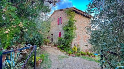 Panoramic setting, three-story stone house, to be upgraded, for sale with olive grove in the surroundings of Città della Pieve. Positioned on top of a hill overlooking the Umbrian countryside, just a few kilometres from the medieval town of Città della Pieve, this three-storey stone farmhouse offers 207 square meters (2228 sq ft ) of living space, surrounded by 4.3 hectares (10.6 acres ) of land featuring landscaped gardens, a productive olive grove with some 300 trees, and arable fields. The elevated position affords sweeping, unspoilt views of the surrounding countryside, with access provided by a well-maintained white road of 1.6 km. The interiors retain the timeless charm of Umbrian rural architecture, with terracotta floors, exposed wooden beams and handcrafted timber window frames. The ground floor comprises a welcoming living room with wood-burning stove, a traditional kitchen, a double bedroom, a bathroom and a closet. On the upper level, two further bedrooms, a second bathroom and a closet, while the lower ground floor houses 3 rooms used as deposit and storage. A 30 square meters (322 sq ft ) outbuilding, formerly used as a tack room, now in need of full restoration, offers considerable potential for conversion. Just 4 km from all amenities, this property represents an exceptional opportunity for those seeking an authentic country residence, immersed in nature, perfectly suited as both a all-year-round home or an elegant second retreat in the very heart of Umbria. PROPERTY Ref: CDP3357Location: Città della Pieve, Province: Perugia, Region: UmbriaType: 207 sq m/2228 sq ft three-story stone house paired with an outbuilding and 4,3 hectares/10.6 acres of agricultural land with an olive groveYear of construction: 1800 Conditions: to be restoredAnnex/es: 30 sq m/322 sq ft barn used as tack room, to be convertedLand/Garden: 4.3 hectares/10.6 acres including 2.9 ha/7 acres of olive groves with 300 trees and 1.4 ha/3.4 acres of arable landLayout: Basement: 3 deposit rooms and a small caveGround Floor: living room with wood-burning stove, kitchen, 1 double bedroom, 1 bathroom, and closetFirst Floor: 2 double bedrooms, 1 bathroom, and closetDistance from services: 4kmDistance from main airports: Perugia 55kmGravel road: 1.6km in good conditionsUtilities: Fixed telephone network: available; Internet: available; Heating: wood-fired boiler and solar thermal system for hot water; Water: mains city supply; Electricity: available + a 2 kW photovoltaic systemThe property is owned by a private individual. The location, for privacy, is approximate. Please note all measurements cited are approximateEnergy Efficiency Rating: GApolloni & Blom RE conducts technical due diligence with the owner's technician to have a full report on each property's urban and cadastral state of the art. The due diligence may be requested by clients showing a strong interest in the property