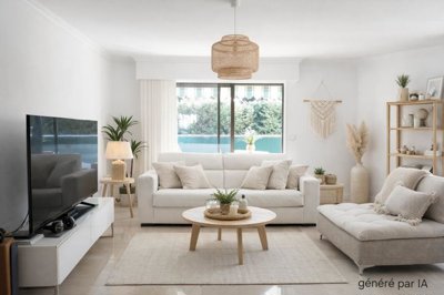 Cannes Marina - Prestigious residence between golf course, beach, and marina. Rare opportunity! Superb 2-bedroom apartment of 88 sq m, located in a gated, secure, and gated residence with two swimming pools, green spaces, and a prime location overlooking the Old Course golf course and the marina. The apartment features a bright living room opening onto a large sunny terrace, a separate kitchen with a balcony overlooking the marina, two bedrooms with en-suite shower rooms, a guest Wc, and storage. Fully air-conditioned and exceptionally quiet. Within walking distance: beaches, ports, the village of La Napoule, and shops. Includes a private garage and cellar. An 8 x 3 m mooring ring at the foot of the building is available for purchase separately. A rare find, ideal for golf enthusiasts, sea lovers, and those seeking a relaxed lifestyle. (The first photo in the listing was AI-generated to suggest alternative decorating options for this apartment.)