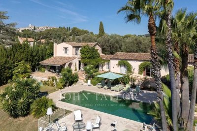 Ideally located near the picturesque village of Saint-Paul de Vence, on the top of a ridge benefiting from South-West and East exposure, this sumptuous, charming villa of approx. 244 m² is set on a generous plot of almost 5,000 m², offering unrivalled privacy. It offers an impressive panoramic view of the Saint-Paul sunsets.