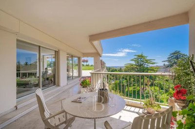 Cannes, in the prestigious residential neighborhood of Montrose, within a luxury residence with a caretaker, park, and pool, this spacious 260 sqm apartment offers a rare renovation opportunity. It opens onto a vast 600 sqm terrace with panoramic views from the hills of La Californie to the Esterel mountains, with beautiful southern exposure. The spacious terrace also offers a sea view.