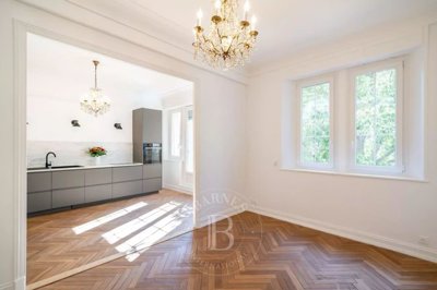 Fully renovated 4-room apartment with about 112 sqm of living space and very high ceilings (approx. 3.10 m).