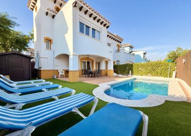 Levante Properties is delighted to present this beautifully upgraded Isla Grosa villa for sale on the prestigious Mar Menor Golf Resort. Thoughtfully enhanced to provide additional comfort and space, this elegant home has been intelligently reconfigured to include a third bedroom, while the original main bathroom has been divided into two modern shower rooms for greater convenience. The first floor accommodates three spacious double bedrooms and two contemporary shower rooms, each equipped with efficient hot and cold air conditioning units, ensuring year-round comfort.