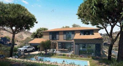 New villa under construction with swimming pool, in a quiet location. The villa comprises an entrance hall, fitted and equipped kitchen, large living/dining room, 4 en suite bedrooms. Garage and parking.