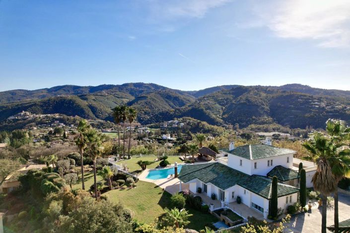 In a dominant position in the Cannes hinterland, just 15 minutes from the beaches and a few minutes from the main roads and the charming village of Auribeau-sur-Siagne, this villa enjoys a peaceful setting and offers a magnificent panoramic view over the mimosa-covered hills and down to the sea. Bathed in light thanks to its large picture windows, Villa Les Mimosas features a modern Provençal style.
