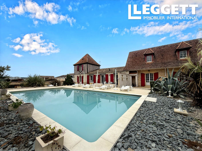 The manor’s three gîtes (195 m², 131 m², 135 m²) combine period charm with tasteful renovation, with access to two pools and spacious terraces.