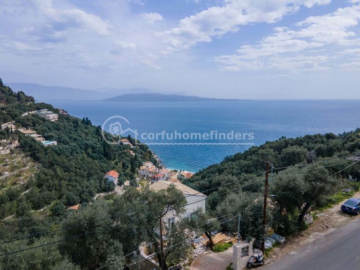 The plot is steep, with water and electricity easily available. The views are lovely, towards the sea with Albania in the distance.