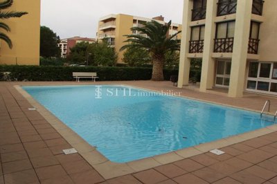 Apartment for sale in Sainte-Maxime. In a peaceful and secure residence with a swimming pool, right in the heart of the town center and just steps from the beaches, a beautiful studio with a mezzanine of approximately 24m².It includes: entrance, living room opening onto a balcony, kitchenette, cabin area with bunk beds, mezzanine, and bathroom with toilet.Private outdoor parking.
