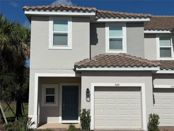 Beautiful near-new Marigold model townhome in the desirable, gated Bellalago community! This luxurious end-unit features 3 bedrooms, 2.5 baths, and a 1-car garage. Enjoy tranquil garden views and open-concept living with high ceilings, elegant ceramic tile floors, and abundant natural light. The modern kitchen showcases quartz countertops, a center island, stainless-steel appliances, and ample storage. Sliding glass doors from the living and dining areas open to a private patio perfect for outdoor relaxation. Upstairs, spacious bedrooms provide comfort and style, with convenient in-home laundry. HOA includes free basic fiber internet and cable. Townhouse lawncare and exterior maintenance are included in the HOA fee. Bellalago offers resort-style amenities including pools, fitness centers, tennis and basketball courts, walking trails, pier, boat dock, 24-hour security, on-site dining and so much more. Surrounded by lush landscapes, yet close to shopping, dining, schools, and Poinciana Medical Center just 5 miles away — experience the best of luxury and convenience in this serene, park-like community!
