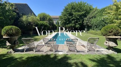 The garden space includes a beautiful 15 x 3 m swimming pool with an electric rolling cover, a lovely summer dining area, and several shaded terraces. No overlooking neighbors.