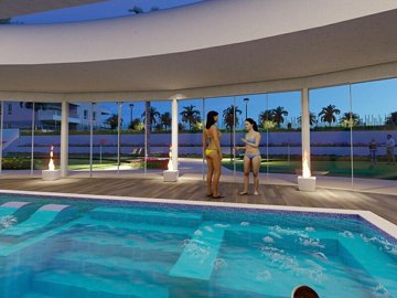 This new gated complex will have large common areas where you can relax in the large summer pool or in the Heated Spa, children will have to enjoy the "Vista Park" and the more sporty a gym area with bio-healthy machines and a " Putting Green Golf' to practice your swing, all in a closed complex with large and well-kept green areas for everyone to enjoy.