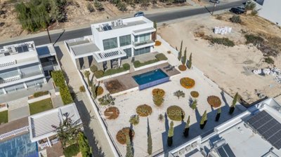 The modern kitchen is fitted with cupboards, granite worktops, and provisions for all major appliances. Bathrooms are finished with premium ceramics, stylish vanity units, and top-quality sanitary ware. The villa also benefits from full thermal and waterproof insulation, solar water heating, a pressurized water system, air-conditioning in all main areas, and a complete security alarm system.