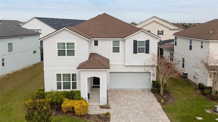Fully Furnished 9-Bedroom Model with Pool, Spa & Game Room... Now available is a rare opportunity to own in the exclusive, guard-gated Solara Resort—ideally located just steps from the clubhouse and world-class amenities. This beautifully appointed Naples II floor plan features 9 spacious bedrooms, 6.5 bathrooms, a large loft, a two-car garage, and comes fully furnished, making it a true turnkey investment. Meticulously maintained. From the moment you walk in, you’ll be impressed by the open-concept layout, soaring ceilings, abundant natural light, and stylish design. The gourmet kitchen is a chef’s dream, featuring 42-inch cabinets, granite countertops, stainless steel appliances, and a large island with breakfast bar—perfect for casual meals and entertaining. The living and dining areas flow seamlessly onto a covered patio overlooking a private heated pool and spa, creating the perfect outdoor retreat for relaxation or hosting guests. The primary suite is conveniently located on the first floor and includes a walk-in closet and spa-like en-suite bath with dual vanities, soaking tub, and separate shower. Upstairs, themed bedrooms and a large loft with multiple big-screen TVs offer an immersive and fun-filled experience for guests, making this home highly desirable for short-term rentals. The garage has been transformed into a vibrant game room, further enhancing the home’s appeal on platforms like Airbnb and VRBO. With strong booking performance and an option for the seller to share future reservations, this is an investment opportunity you don’t want to miss. Located less than 15 minutes from Walt Disney World and with easy access to I-4, US-192, and US-27, the home offers unmatched convenience to Orlando’s top attractions, restaurants, and shopping destinations. The HOA includes internet, cable, landscaping, and access to one of Central Florida’s most impressive amenity centers. Solara Resort delivers the ultimate resort lifestyle, with a zero-entry pool, FlowRider surf simulator, water slides, poolside cabanas, bar and grill, on-site café, state-of-the-art fitness center, yoga lawn, splash zone, playground, marketplace, and sports courts for basketball, soccer, and volleyball. Whether you’re looking to generate passive income or create a luxurious family getaway, this property checks every box. With limited inventory and high demand in Solara Resort, opportunities like this are extremely rare.