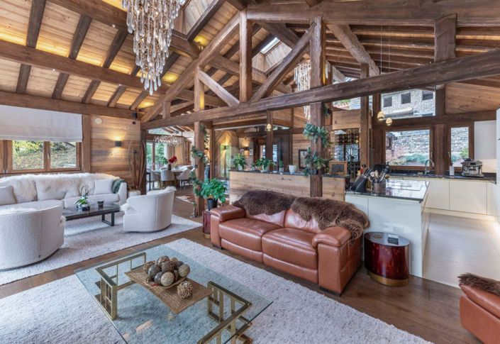 It has an upper level of over 100 sq.m., dedicated to the spacious, light-filled living area with the kitchen opening onto the large living room, the dining area and with access to the large heated terraces to be mesmerised by the panoramic views over the valley. The property has four en suite double bedrooms (including two masters with dressing rooms - with one currently converted into a study), a sauna, a jacuzzi, a hammam, a fully-equipped gym (which can easily be converted into two bedrooms with en suite shower rooms), a laundry room and a technical room. To complete the chalet, there is a 20 sq.m closed garage for two cars and 6 adjoining outdoor parking spaces.