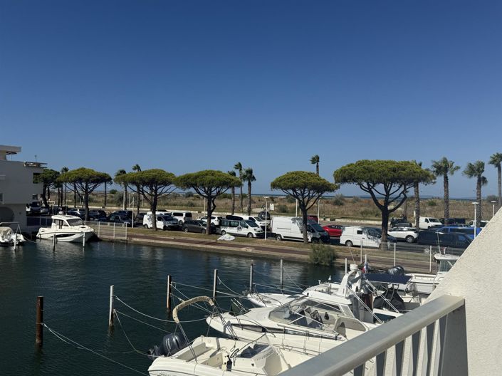 Marina apartment on the ground floor overlooking a private pontoon, 4 rooms, 62 m2 in Grau du Roi, Port-Camargue Ideally located at the foot of the shops and only a few steps from the beach , in a quiet and sought-after environment of Port-Camargue, this P4 type crossing marina, facing North-South , benefits from excellent light throughout the day. Its private jetty of 3m x 9m will allow you to moor your boat directly in front of your house, and a private parking space completes the package. The interior offers on the ground floor a cabin bedroom, a kitchen open to a bright living room opening onto a friendly terrace by the water, as well as a Wc. Upstairs, you will find two beautiful bedrooms, one with a terrace, a bathroom and a separate toilet. With its privileged location, its comfort and its direct access to the pleasures of the sea, this marina is perfect for living there year-round or enjoying unforgettable holidays in Port-Camargue.