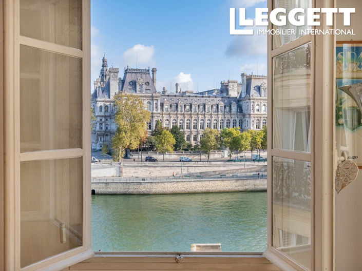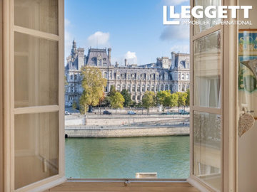 Ile de la Cité, stunning views of the Hôtel de Ville and the Seine from this one-bedroom apartment just a stone's throw from Notre-Dame. This unique 36m² Carrez corner apartment enjoys breathtaking views of the Quai aux Fleurs while being set back from the Seine for added tranquillity. Completely renovated and superbly laid out, with no wasted space, it comprises a beautiful living room with 4 bay windows providing exceptional light, which includes a lounge, a fitted kitchen with dining area, a bedroom, an en-suite shower room and a WC. Alone on the 4th floor of a 17th-century building, with its original stone and oak staircase, in the heart of a Paris steeped in 20 centuries of history. Become the 892nd inhabitant of the Île de la Cité (2016 census), or the Île de la Fraternité during the Revolution, considered the ancient cradle of the city of Lutetia, probably inhabited by a small Gallic tribe called the Parisii. A must-see.