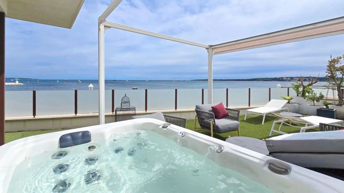 On the ground floor, spacious reception hall serving 3 bedrooms and bathrooms, garage and storage. On the first floor, living room / kitchen opening onto the large terrace and its jacuzzi, a bedroom, bathroom / shower. On the second floor, a bedroom en suite.