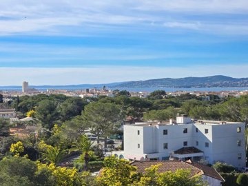 Bas de Valescure, Mairie d'honneur area, discover this large 3-room apartment of 74 m² in excellent condition (possibility of T4), where brightness, view and space are the key words. On a high floor, it benefits from a superb unobstructed view to the sea, with a South / West exposure. Living room opening onto the 15 m² terrace, as well as the kitchen. 2 bedrooms of 12.8 (with private balcony of 4.50m²) and 11m², bathroom, toilet, several cupboards. Cellar, free parking. Secure residence with elevator, from the 1970s in perfect condition. (Charges also include heating, hot and cold water).