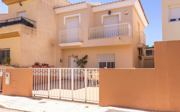 Built over 121sqm over two levels on a plot of 134sqm North facing front and south facing rear the layout is Ground floor: Entrance hall, spacious living-dining room with functional fireplace, fully equipped separate kitchen with access to a large pantry, and a complete bathroom with walk-in shower. Upper floor Three double bedrooms with great natural light and a second full bathroom. Outdoor area: Front terrace with private parking space. Extras: Air conditioning, aluminum windows with double glazing and security bars, reinforced front door. The property is sold unfurnished however the kitchen is fully equipped