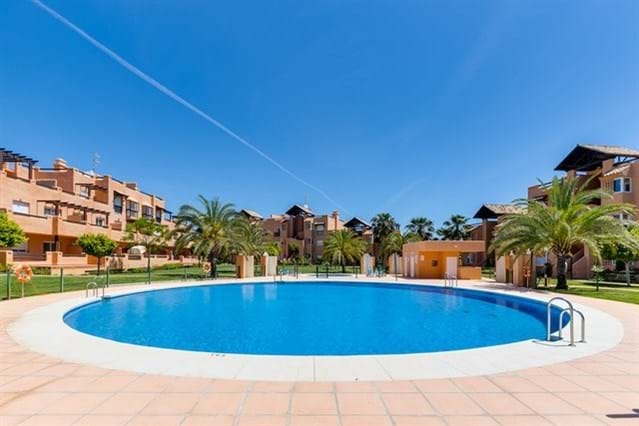 The property comprises of a fully fitted kitchen with an independent laundry room, three large double bedrooms with fitted wardrobes, a family bathroom and private en-suite to the master bedroom. The large open plan living dining room leads directly out to two large sunny terraces, the first has direct views over the sparkling communal pool situated in mature gardens. The second larger terrace offers ample space for relaxing and dining in a private space, from this terrace you also have direct access up to a solarium, perfect for soaking up the sun.