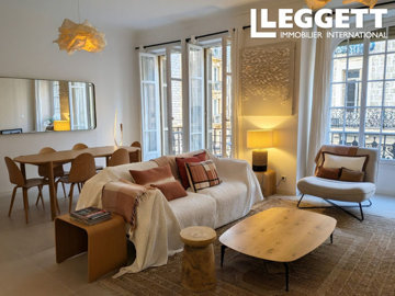 The spacious living room features tall bay windows that flood the space with natural light, creating a bright and welcoming atmosphere throughout the day. The open modern kitchen is fully equipped and thoughtfully designed. Two comfortable bedrooms overlook a inner courtyard. Both balconies—one attached to the living room and another accessible from the bedroom—offer delightful outdoor spaces for morning coffee or evening relaxation. The apartment includes a combined shower room and laundry area, plus a convenient guest toilet. Fully air-conditioned and sold completely furnished with modern, tasteful furniture. This turnkey apartment is the perfect opportunity to own a move-in ready property in Nice's vibrant city center.
