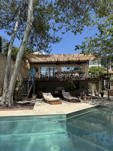 Rare, 5 minutes from the Gallargues Le Montueux tollbooth, in the heart of the pretty village of Aigues vives, close to shops and schools. Are you looking for your family or a second home, this incredible house is ideal. Quietly, and out of sight, let yourself be carried away to this 19th century residence of character of more than 300 m2, completely restored to reveal all its charm on nearly 700 m2 of land. You will be captivated by the timeless elegance of its period elements bathed in light, the generous spaces and the high-end services which make this residence a hidden gem. The originality of its design, the perfect alliance between contemporary and traditional, as well as the exceptional quality of the materials used, give these 350 m2 an unrivaled harmony, ready to accommodate all your life projects. Its remarkable decoration, its unique renovation will transport you with its Andalusian patio, its outdoor swimming pool and its indoor counter-current swimming pool, its suspended terrace. Its modern kitchen and a very spacious dining room for entertaining, two large living rooms, an office, 3 large bedrooms, 2 bathrooms and 3 toilets. Most: - a large garage, a wine cellar, a laundry room, a sauna and a gym, a courtyard at the front to park 4 cars. - A duplex outbuilding with kitchen living room, a bedroom and a bathroom with toilet which can be rented through Airbnb. Gas heating, fireplace, and air conditioning. Photovotaic panels with resale. Come and discover it.