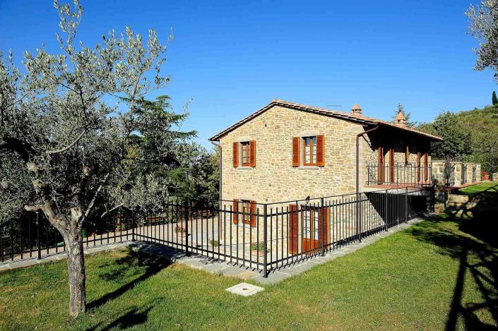 Beautiful farmhouse a short distance from Cortona and in a panoramic position. The property, very convenient to reach, is in a dominant position and is currently divided into 2 completely independent apartments with living room with fireplace, dining room with kitchenette, 2 bedrooms and a bathroom each. The renovation is recent and in typical Tuscan style with some concessions to comfort and practicality. The garden is just over 2.5 ha on various terraces and has numerous olive trees (around 700), a large garage, a swimming pool and some patios to be used for outdoor dining under an umbrella.