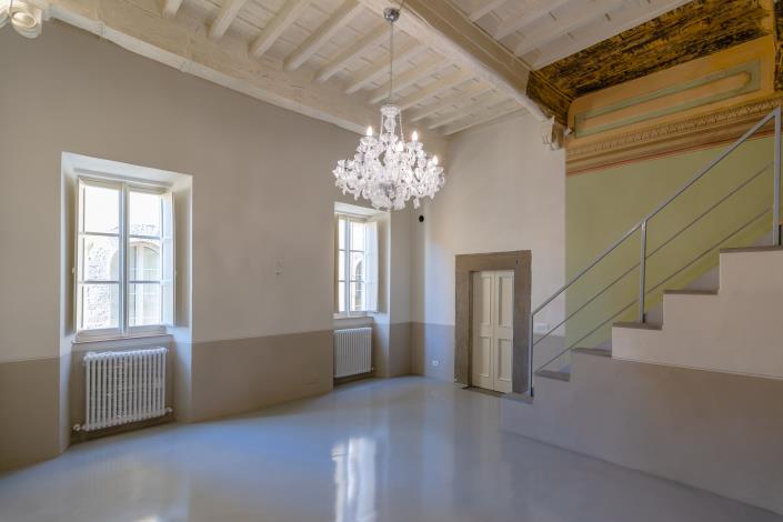 The renovation has just been completed with a very modern and personal taste with resin floors and pastel shades in pleasant contrast with the historical elements that still emerge in various points of the apartment.