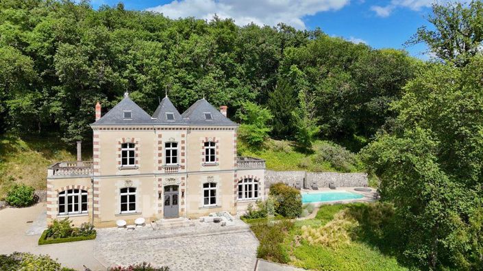 Exclusivity. Restored nineteenth century castle of about 330m2, with a park of 6Ha, 5 minutes from the shops of Chinon. Accessible via the main driveway overlooking the pond, the completely redesigned Château combines character and refinement. On the ground floor: entrance, living room, dining room, music room, office-library, laundry room, scullery and Siematic fitted kitchen. On the first floor: 1 suite with bathroom and terrace above the pool, 2 bedrooms with private terraces, 1 shared bathroom. On the second floor: 2 air-conditioned bedrooms and a bathroom. Caretaker's house of about 100m2 with adjoining garage, composed of: kitchen, laundry room, living room with fireplace, 2 bedrooms and a shower room. Outside, furnished terraces with heated swimming pool and in-ground spa. In annexes, a double garage with workshop, two cellars. Ideal for a family home or nature lover (7500m2 of meadows, lake and woods). 5 minutes from Chinon and 35 minutes west of Tours.