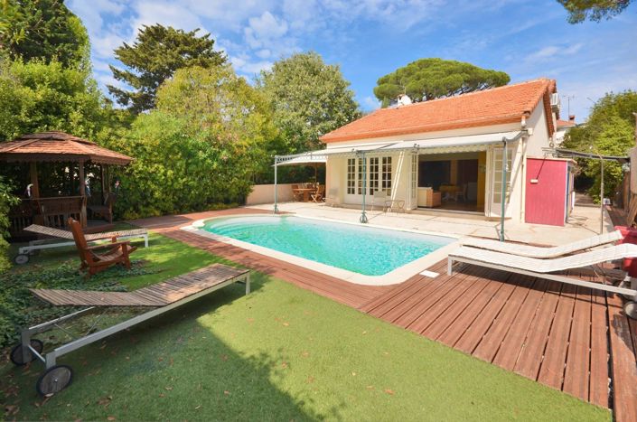 Juan-Les-Pins : situated in a quiet residential area to the walking distance to the beach and all amenities, beautiful villa offering : entrance hall, vast and bright living / dining room, fully equipped open-plan kitchen, 4 bedrooms including 2 bedrooms on the round floor and 4 bathrooms. £Lounge T.V. And laundry room. Landscaped garden of 685 m² with a lovely pool area. Car port. Information on the risks to which this property is exposed is available on the Georisques website