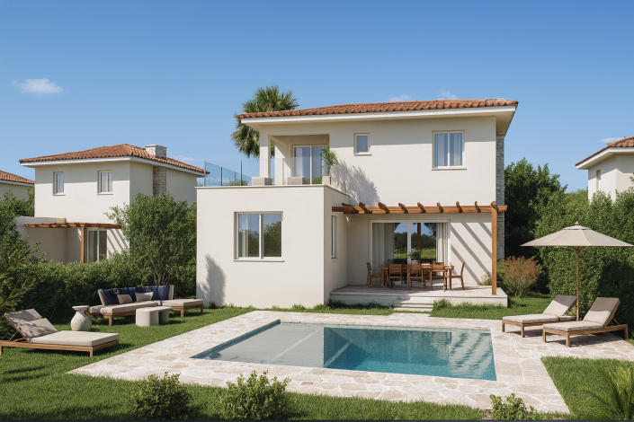 New 3-bedroom detached villa with private swimming pool in the exclusive Thalassothea Gardens seaside development, Maroni Cyprus. Delivery approximately 12 months from contract signing.
