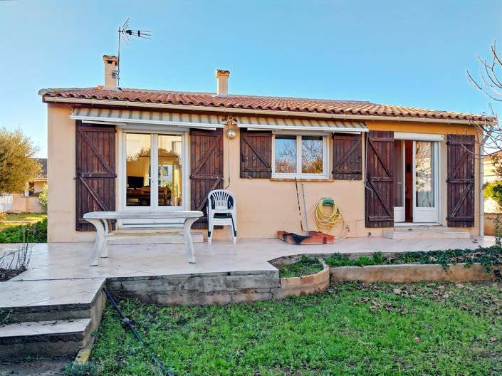 This single-storey, detached bungalow sits on a plot of approximately 690m² and offers two bedrooms, a separate kitchen, and a light-filled living room featuring a fireplace.